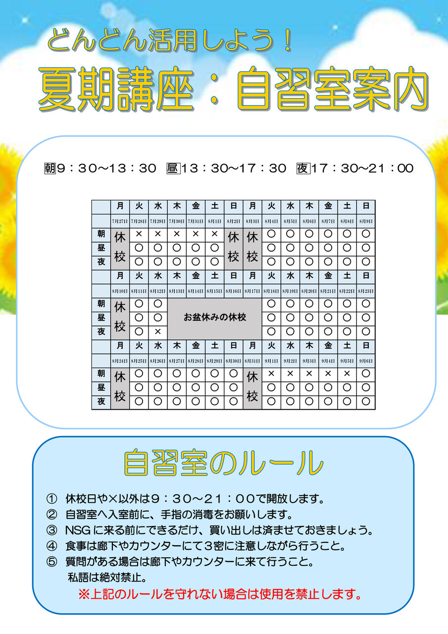 現在、まだまだ夏期講習も受付中です。